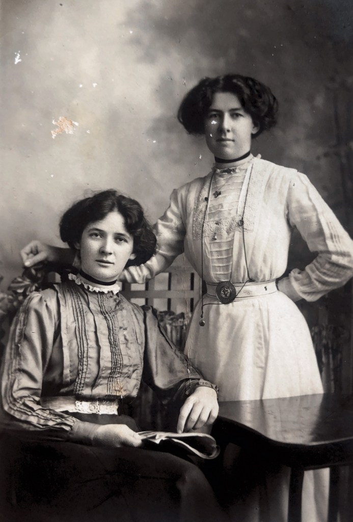 It is a lovely likeness of Maggie, but there is something else precious about this photo. Maggie was a dressmaker until her marriage at the age of 30. Her daughter Gwen and granddaughter Margaret used to tell stories of the beautiful clothes she made. None now survive, and the black dress she is wearing in the photo is one of the few links to that part of her story.