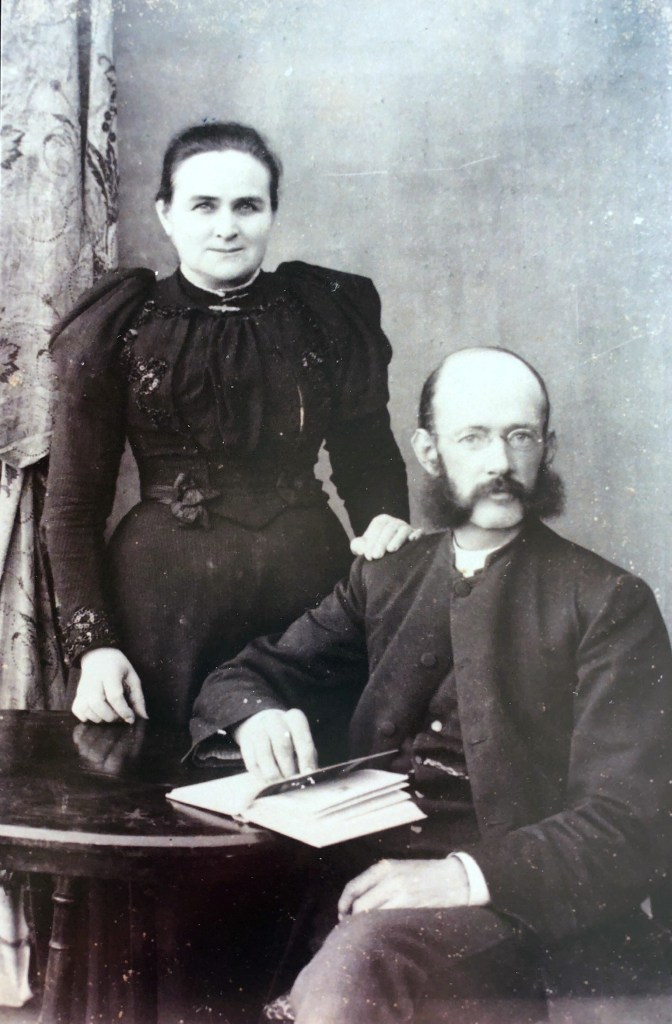 Maggie Davies does not appear to best advantage in her 1887 wedding photo. She and her husband Richard are standing. Maggie’s head does not even reach the top of Richard’s shoulder and she looks dumpy.