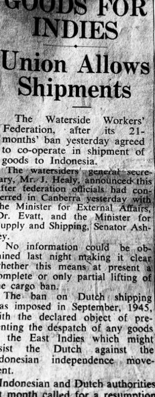 He mentioned seeing hundreds of Dutch troops in Kendari and once of seeing them guarding some ‘activists’. He felt that the Dutch were trying their best to resolve the conflict between themselves and the Indonesian nationalists who did not want the Dutch to return and told Margaret that countries such as Australia should keep their nose out of Dutch affairs.